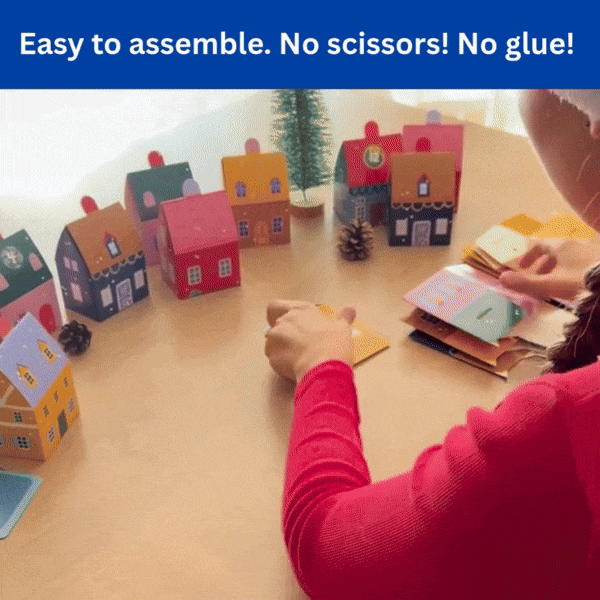 No cutting, no glue — just a quick 10-second fold and your Advent Town is ready to shine.